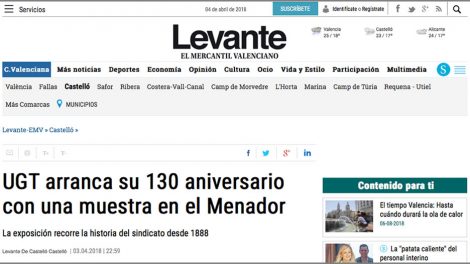 3 de abril de 2018. Levante, el mercantil valenciano. UGT Comarques del Nord presentó en la mañana de ayer la Exposición Itinerante «UN MÓN SENSE...