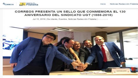 Correos Filatelia. Julio de 2019 Correos ha presentado esta mañana el sello que conmemora el 130 aniversario de la Unión General de Trabajadores...
