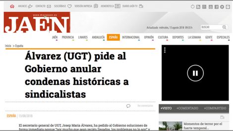 13 de agosto de 2018. Diario de Jaén. El secretario general de UGT, Josep Maria Álvarez, ha pedido al Gobierno soluciones de forma inmediata porque...