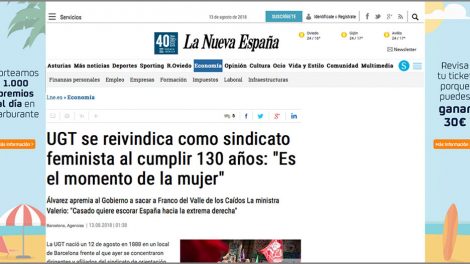13 de agosto de 2018. La Nueva España. La UGT nació un 12 de agosto en 1888 en un local de Barcelona frente al que ayer se concentraron dirigentes y...