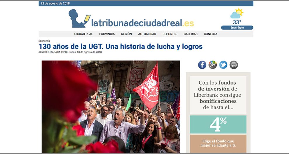 13 de agosto de 2018. La Tribuna de Ciudad Real. El sindicato recuerda y celebra los éxitos de la clase obrera desde 1888 a la actualidad, que han redundado en el estado del bienestar. «Defender los intereses de los trabajadores». Con esta sencilla frase responde la Unión General de...
