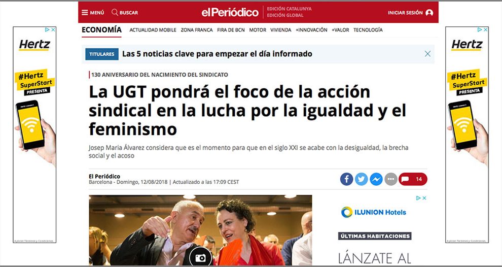 12 de agosto de 2018. El Periódico. El secretario general de UGT, Josep Maria Álvarez, ha asegurado este domingo que la lucha por la igualdad y el feminismo serán algunos de los valores y elementos clave que formarán parte del nuevo manifiesto actualizado de la UGT: “El manifiesto...