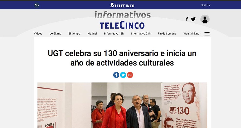 12 de agosto de 2018. Telecinco. La Unión General de Trabajadores (UGT) celebra este domingo 130 años de historia desde su fundación con un acto conmemorativo en Barcelona con el que da paso a un ciclo de actividades que se prolongará hasta septiembre de 2019 y que incluirá exposiciones...