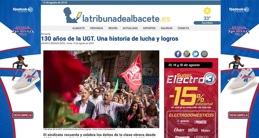 13 de agosto de 2018. Tribuna de Albacete. El sindicato recuerda y celebra los éxitos de la clase obrera desde 1888 a la actualidad, que han redundado en el estado del bienestar «Defender los intereses de los trabajadores». Con esta sencilla frase responde la Unión General de Trabajadores...