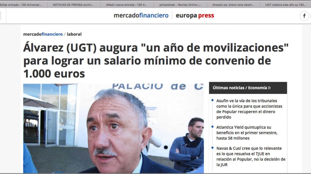 8 de enero de 2018. Europa Press. Por otro lado, Álvarez ha explicado que con motivo del cumplimiento este año del 130 aniversario de UGT, procederán a revisar y actualizar los objetivos fundacionales de la organización, que apenas han cambiado desde su creación. “Queremos...