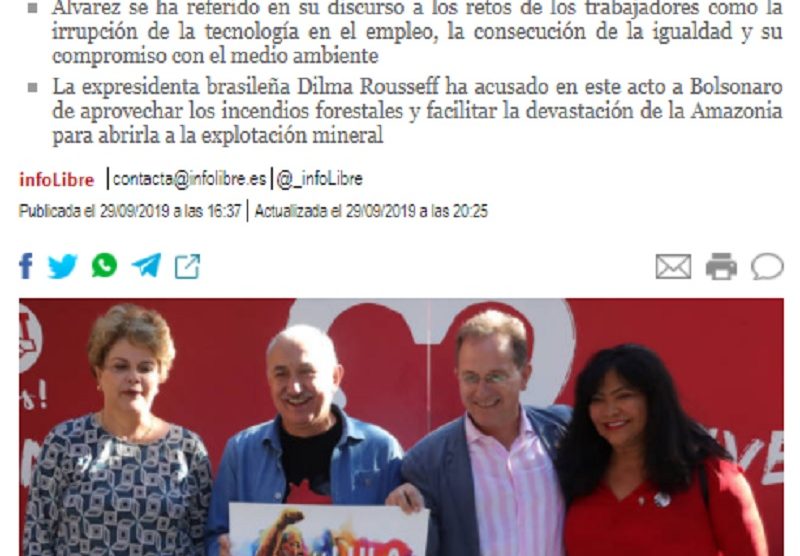 Infolibre. Septiembre de 2019 El secretario general de UGT, Pepe Álvarez, ha exigido seguir adelante con las reformas laborales y la derogación de la denominada Ley Mordaza para así poder “recuperar derechos y libertades”. Así lo ha declarado durante la clausura de los actos...