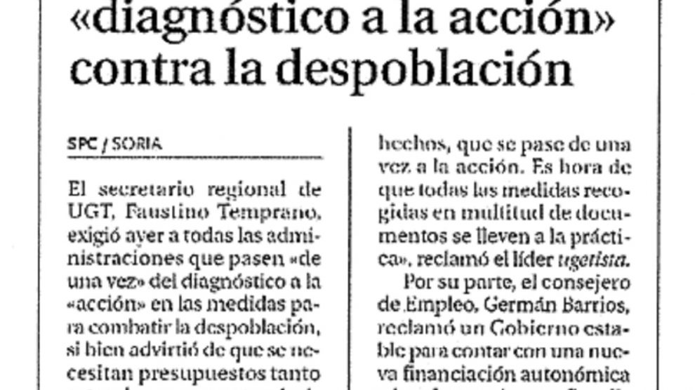 El sindicato ha celebrado en Soria la jornada ‘La España vaciada: retos y respuestas’, enmarcada en los actos conmemorativos del 130 aniversario de UGT y del 25 aniversario de UGTCyL.